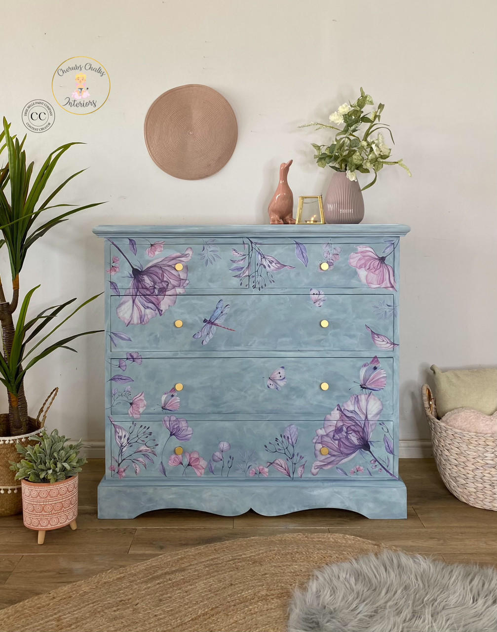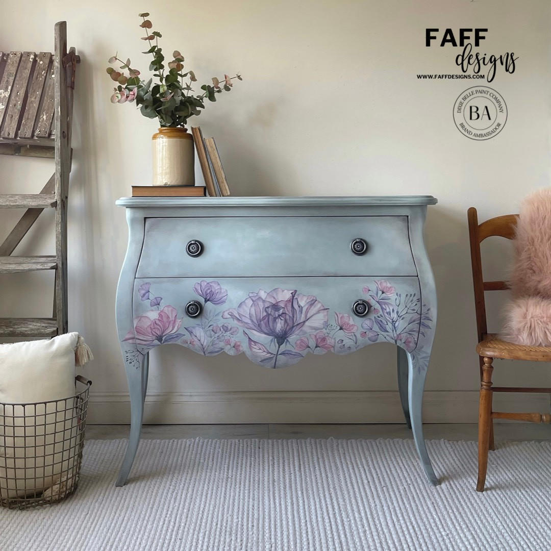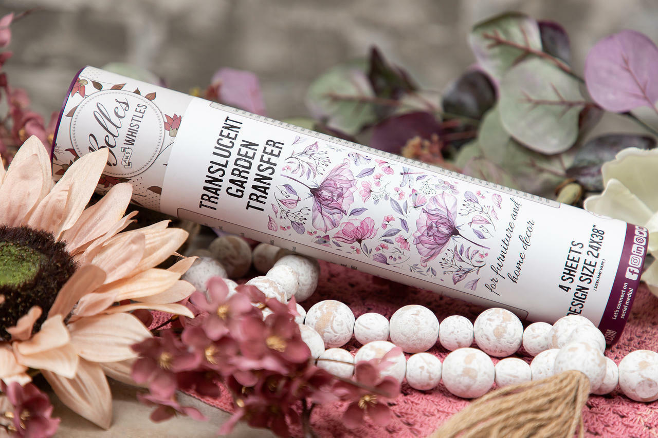 The Translucent Garden Rub-on Furniture Transfer brings an ethereal glow to your furniture. It features graceful florals, delicate greenery, and dainty dragonflies for a blooming effect in your DIY projects. Rub-On Transfers (furniture decals, decor transfers) are an easy way to add personality, creativity, and fun to furniture, fabric, glass, metal, and more. Belles and Whistles Rub-On Transfers are an affordable yet quality product by Dixie Belle Paint Company. Enhance your project by burnishing the transfer with the Dixie Belle Finishing Pad.